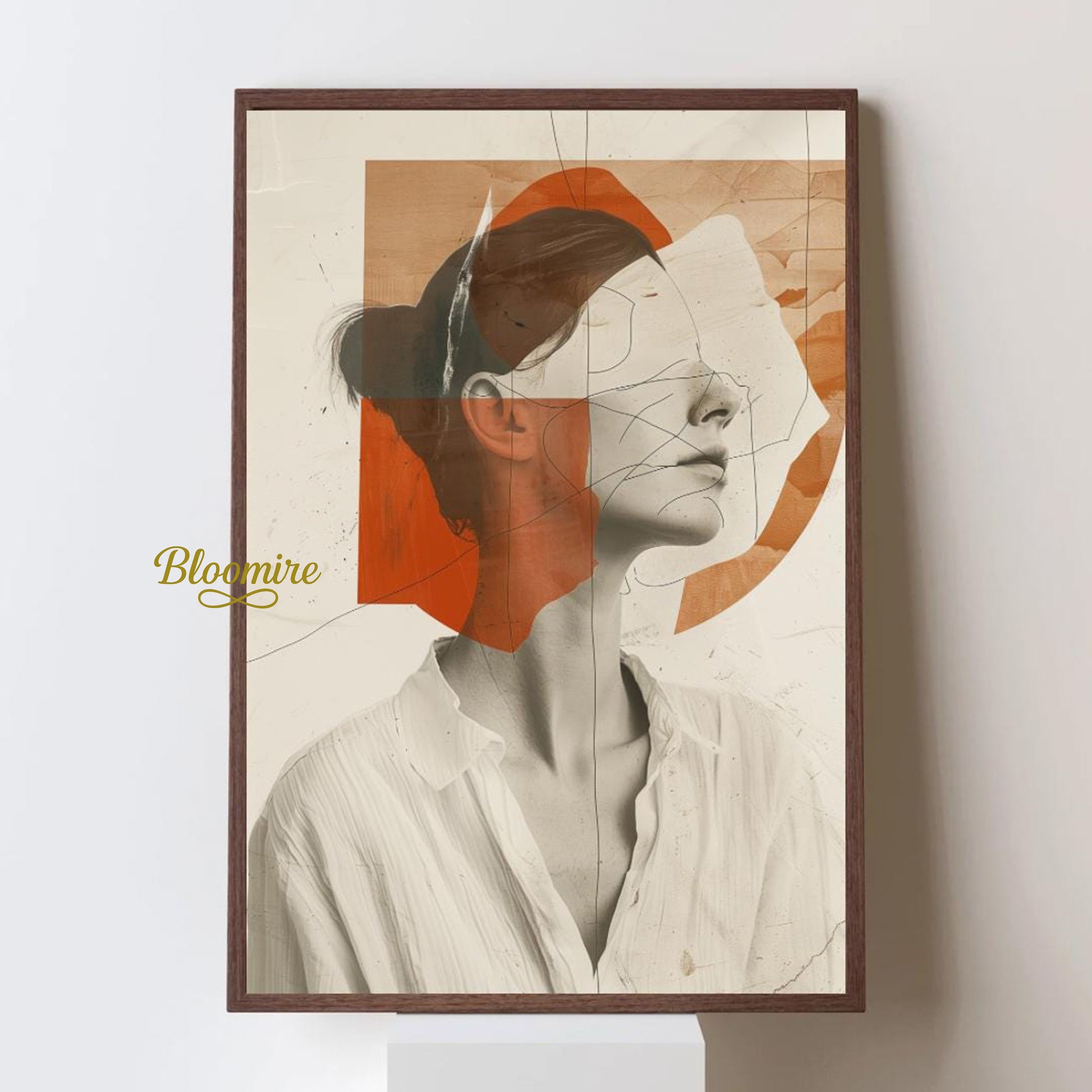 Abstract Muse Poster Set of 3 | Surreal Female Portrait Wall Art | Modern Minimalist Line Art Collage | Neutral Orange Beige Digital Prints